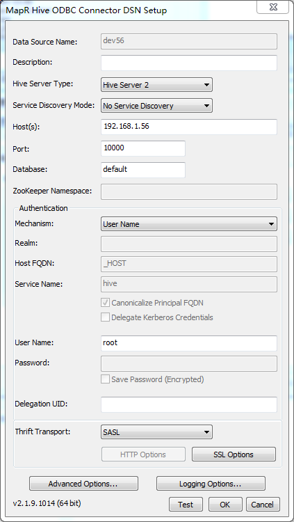 按照下图这样配置,注意修改Hosts为运行Hive服务的主机IP: