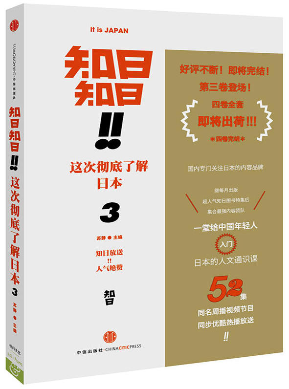 因为今年计划去日本旅行,去一个地方之前,我一般都会做一点攻略,提前做一些了解,这样去游览的时候才更有“代入感”。于是买了这套书,一共有4本。后来我才知道,“知日”系列一共有三四十本。我买的这4本,应该是属于“基础款”。这本书是由苏静主编,在出版领域,“著”和“编”有很大区别,著基本上是作者原创内容,编则通常是收集很多的资料,再进行整合加工,加入自己的理解等。在京东图书,“知日”的其他书籍,我也看到了“知日团队”这样的字眼,所以这系列书应当是群策群力,每人编写一部分,最后再由主编整合而成。