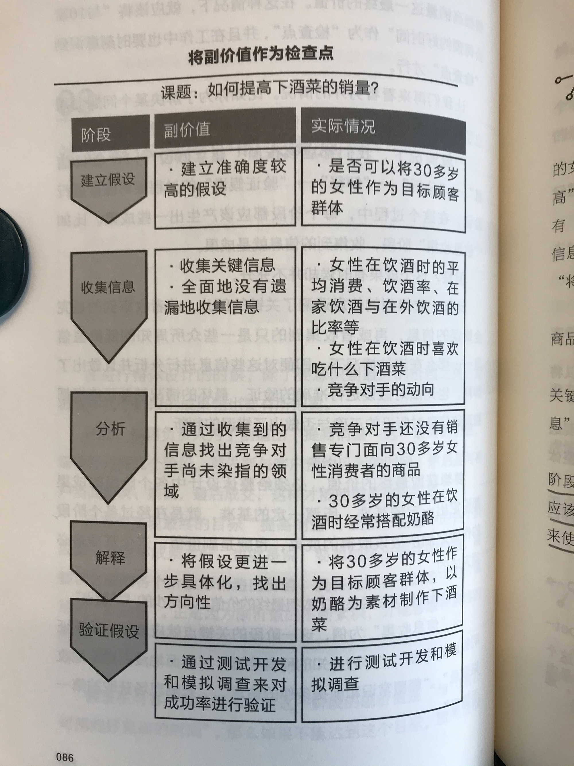 建立假设就是:当遇到一个问题时,比如“销售额难以提高”,建立一个假设,“个别销售骨干的销售技巧,没有普及到所有销售人员之中”,然后围绕“销售技巧共享”进行验证。当这个假设验证后没有取得结果,就重新建立假设并进行验证。