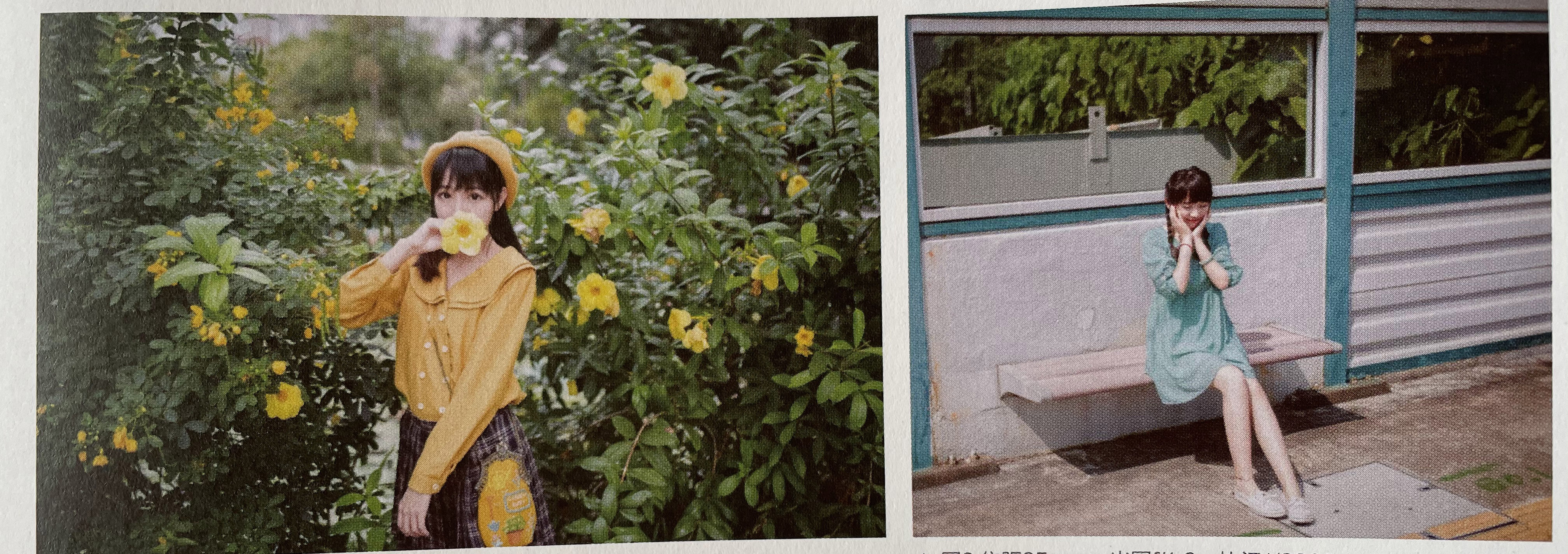 这本书还有几个特点,一个是实例较多且贴近日常场景,作者每章都会选取一些主题摄影进行专门讲解,例如:街道、游乐场、咖啡馆、海边,这些场景都比较常见,所以给了读者模仿和练习的机会。除了实例较多,还讲解了常见的穿搭、配色,以及模特的摆姿,甚至连妆容的选择都提供了一些经验和建议。给我印象深刻的一点,就是拍照的服装和拍摄的场景的色彩和款式搭配,对于最终的成像效果而言非常重要。