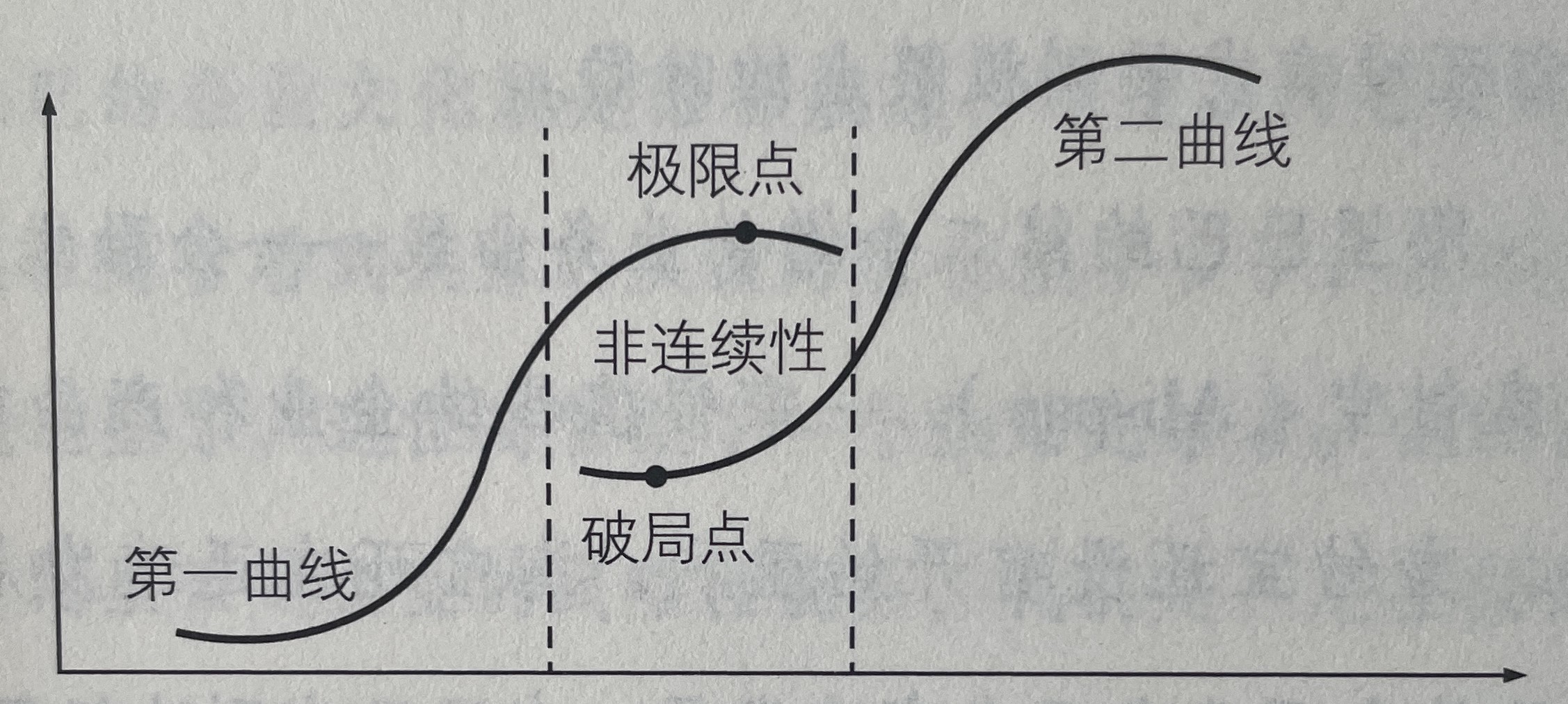 第2增长曲线:在当前业务尚未触达顶峰的时候,就开启第2条业务线;当前业务线到达顶峰,开始逐渐走下坡路的时候。第2条业务线正开始步入正轨。