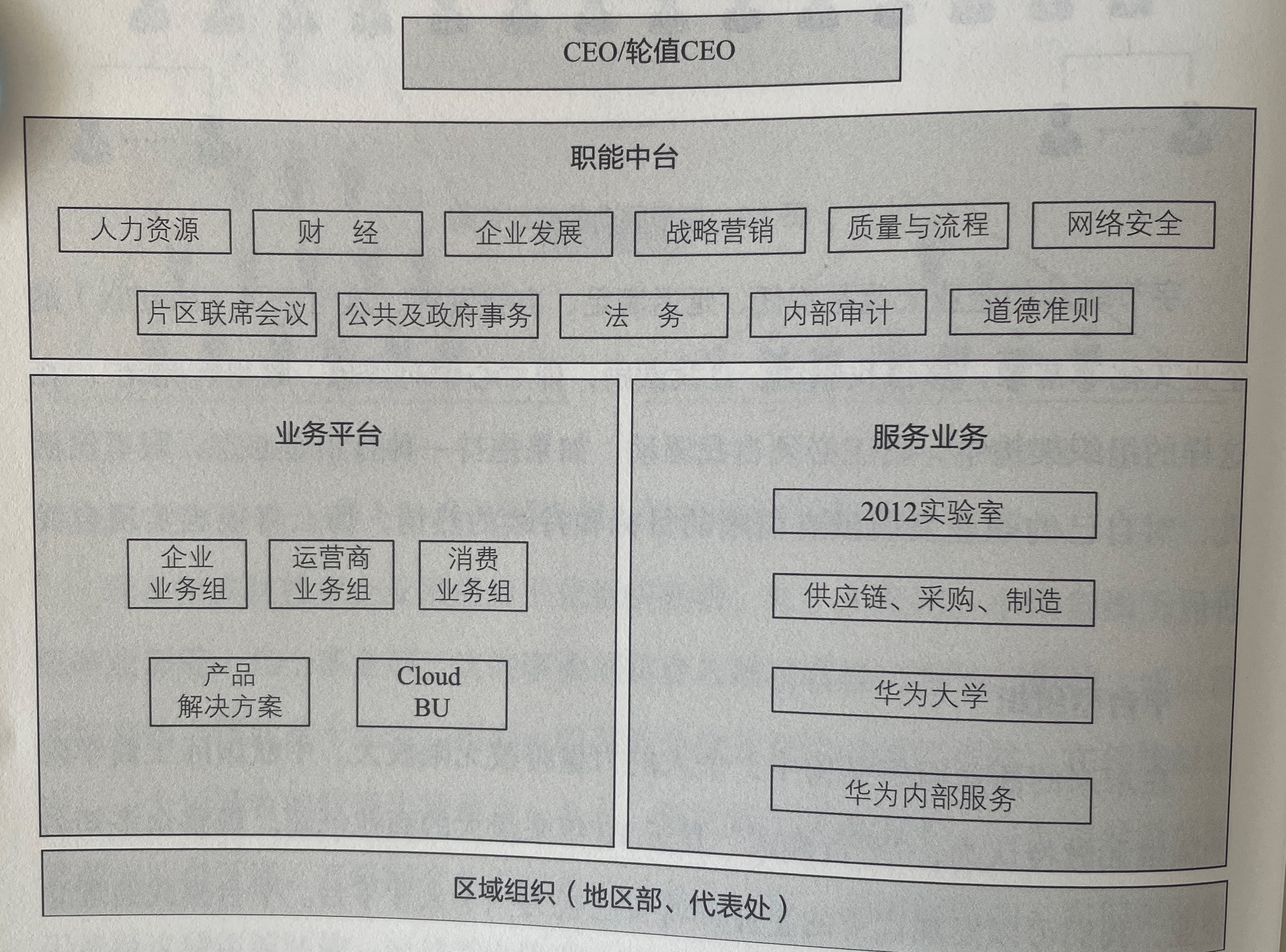 向CEO汇报的都是职能中台,中台全部都是为业务部门赋能的。