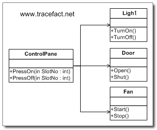 - ControlPanel不知道它将控制哪个类,所以图中ControlPanel和Light、Door、Fan没有联系。