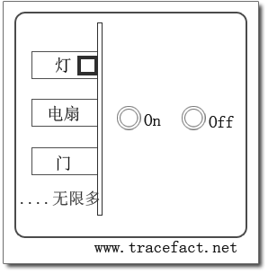 在考虑新的方案以前,我们先回顾前面的设计,第三个问题似乎暗示着我们的遥控器不够好,思考一下,我们发现可以这样设计遥控器: