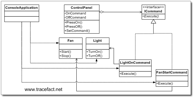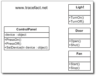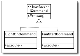 public class FanStartCommand{ Fan fan; public Command(Fan fan){ this.fan = fan; } public void Execute(){ fan.Start(); } }