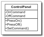 - 我们的ControlPanel应该有两个Command,一个Command对应于所有开启的操作(我们管它叫onCommand),一个Command对应所有关闭的操作(我们管它叫offCommand)。