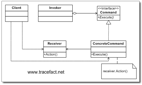 实际上,我们上面做的这一切,实现了另一个设计模式:Command模式。现在又到了给出官方定义的时候了。每次到了这部分我就不知道该怎么写了,写的人太多了,资料也太多了,我相信你看到这里对Command模式已经比较清楚了,所以我还是一如既往地从简吧。