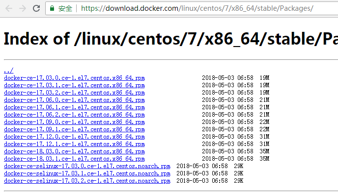 官方下载地址:https://download.docker.com/linux/centos/7/x86_64/stable/Packages/