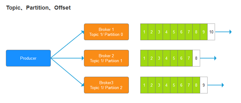 发往Partition的每条消息将获得一个递增id,称为offset(偏移量)。整体上看,结构如下图所示: