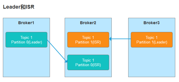 对于多个Partition的Topic来说,只有一个Leader Partition,一个或多个ISR(in-sync replica,同步副本)。leader进行读写,而ISR仅作为备份。