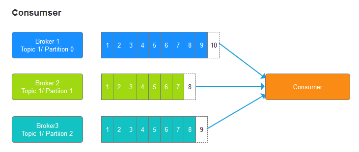 Consume用于从Topic中读取数据。和Producer类似,只需要连接到集群中的任意一个节点,并指定Topic的名称,Kafka会自动处理从正确的Broker和Partition中提取数据发给Consumer。