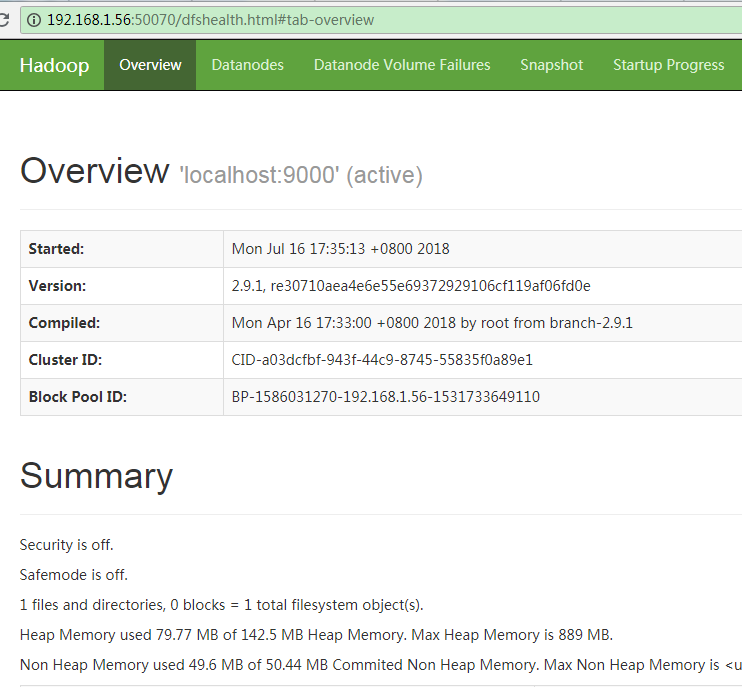 至此,便完成了Hadoop单节点伪集群模式的安装。