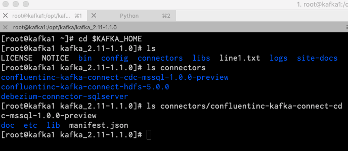 在上面的截图中,可以看到我还安装了confluentinc-kafka-connect-hdfs-5.0.0和debezium-connector-sqlserver两个connector。