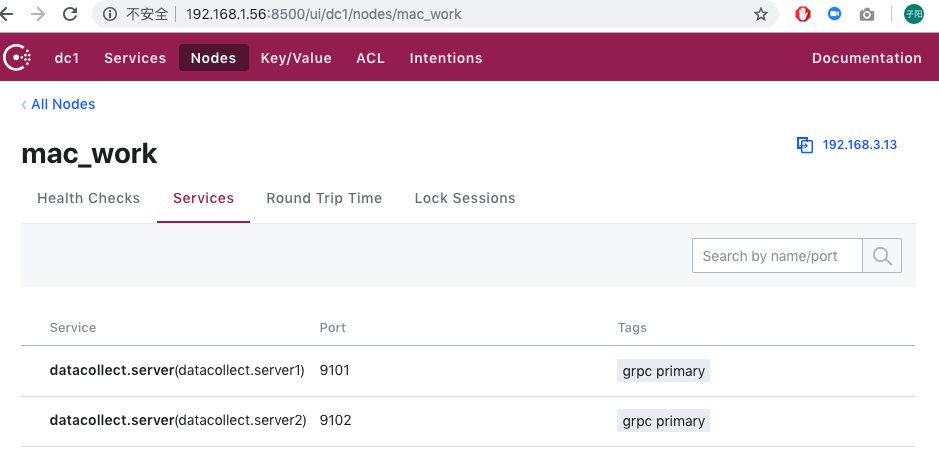 修改config/service.json,将其中的checks部分删除。此时我同时开启了两个服务datacollect.server1和datacollect.server2,所以服务定义如下: