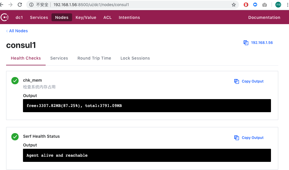 在上一节 Consul 注册服务和健康检查(script检查) - Part.3 定义的两个健康检查中,chk_service1和chk_service2分别和服务datacollect.server1和datacollect.server2关联起来了。健康检查也可以不关联任何服务独立运行。例如,我们可以写一个健康检查的脚本,检查节点的内存,当内存占用低于70%时返回 通过,介于70%~90%之间时返回 警告,高于90%时返回失败。