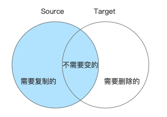并集: apple,banana,pear,watermelon,strawberry,orange,litchi 交集: pear,watermelon,strawberry source和target的差集: apple,banana target和source的差集: orange,litchi